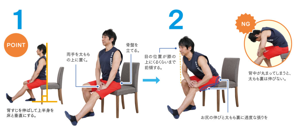 太もも裏(ハムストリングス)とお尻(大殿筋)のストレッチ